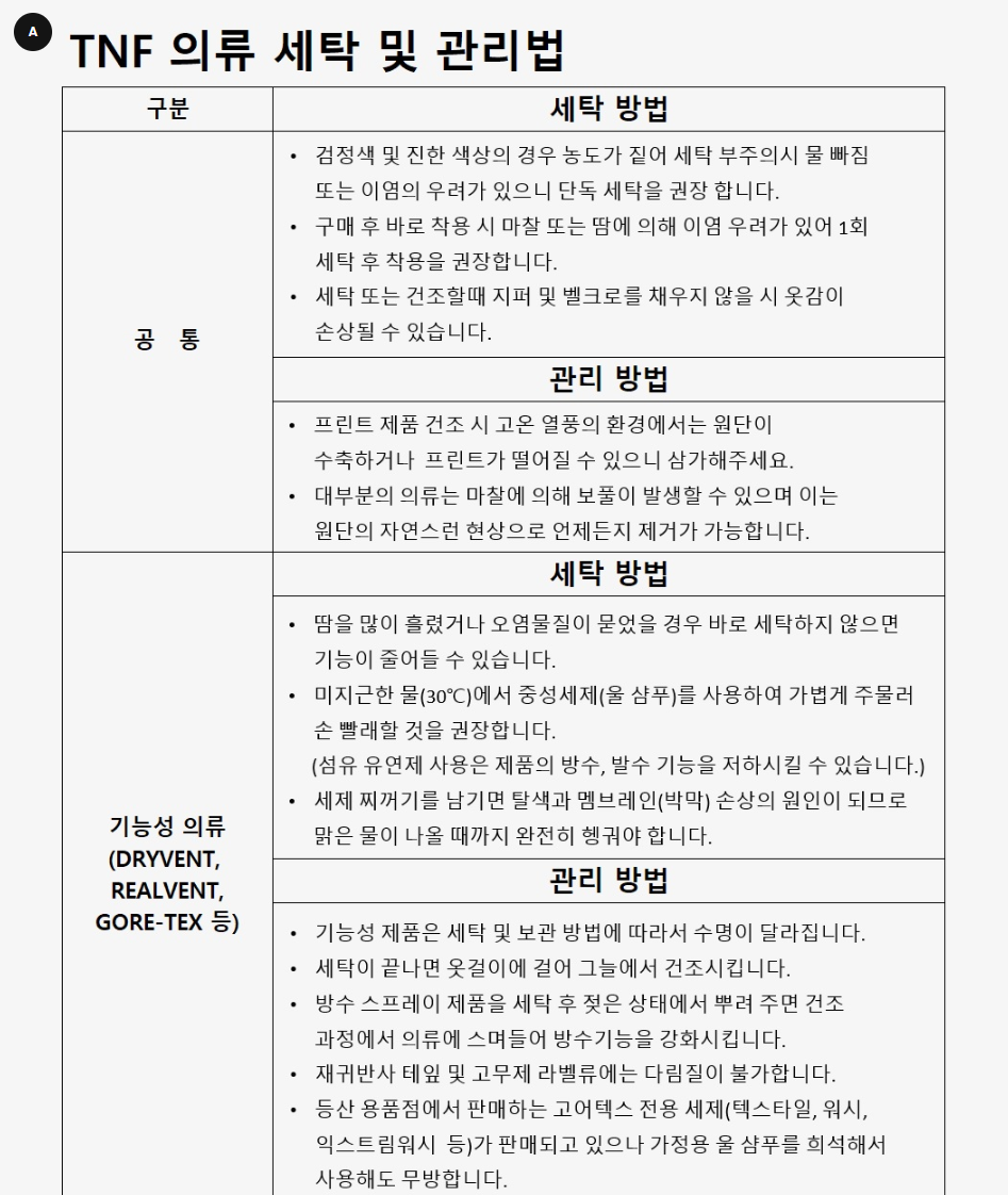노스페이스 철저한 사후 관리로 더 오래 입으세요