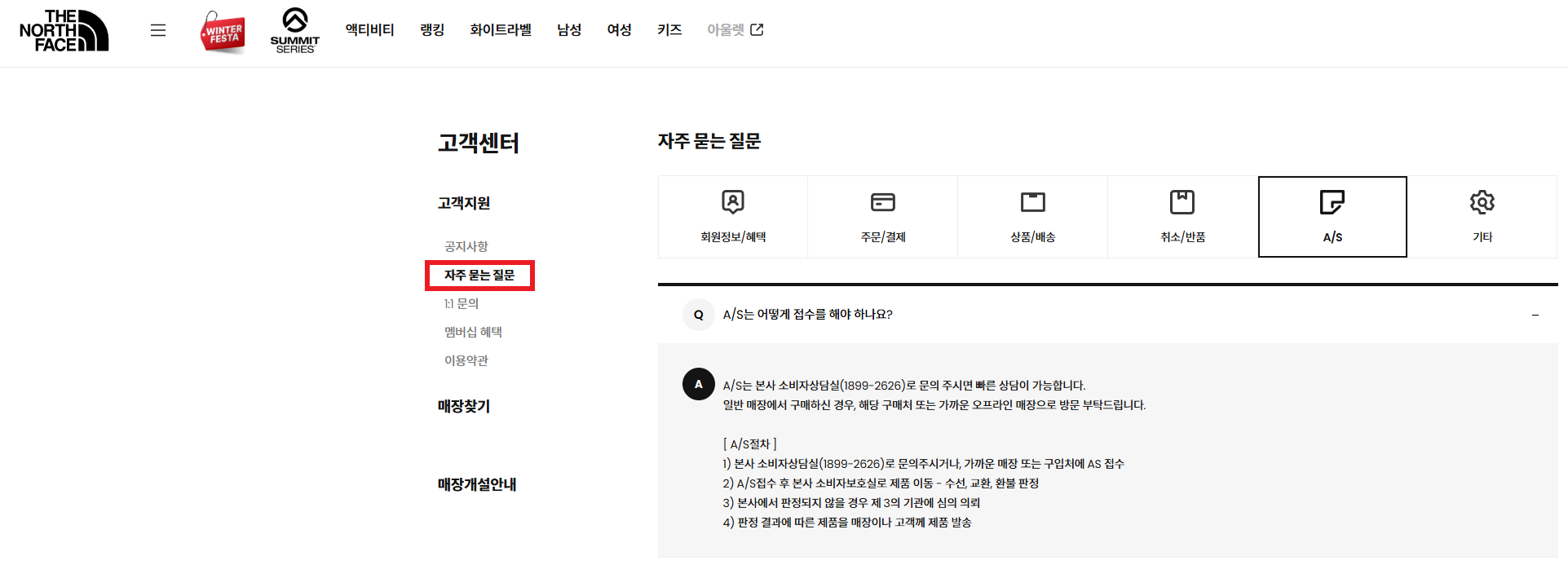 노스페이스 고객센터 정보 및 A/S 접수 가이드