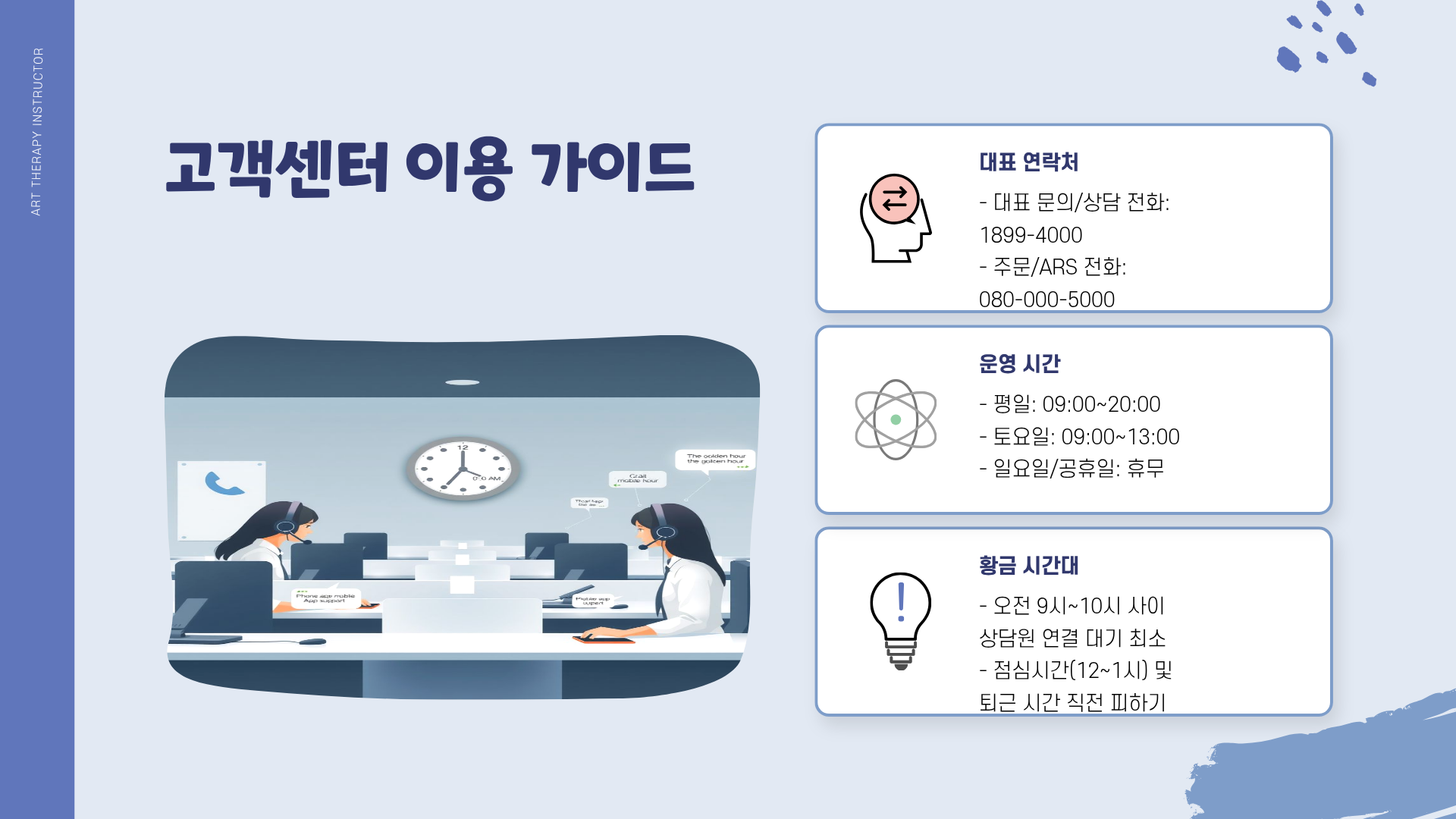| 평일 운영 시간 | 09:00 ~ 20:00 | 오전 9시~10시 사이가 상담원 연결 대기가 가장 짧습니다. |