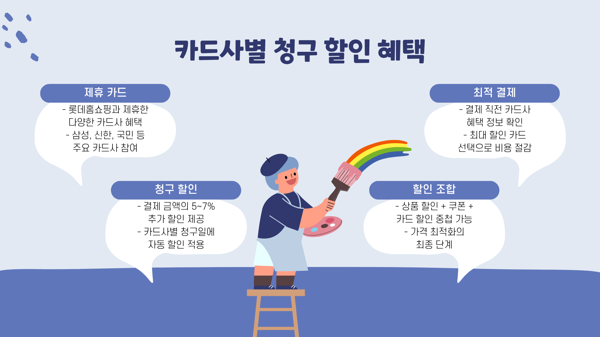 홈페이지 결제 창 직전에 반드시 '카드사별 혜택/청구 할인' 정보를 확인해야 합니다. 롯데홈쇼핑이 매일 제휴하는 카드사(예: 삼성, 신한, 국민 등)에서 제공하는 추가 청구 할인은 상품의 10% 할인을 이미 받은 후의 금액에 또다시 적용됩니다. 이것이야말로 가격 최적화의 최종 단계이자, 가장 많은 고객이 놓치는 '단물'입니다.