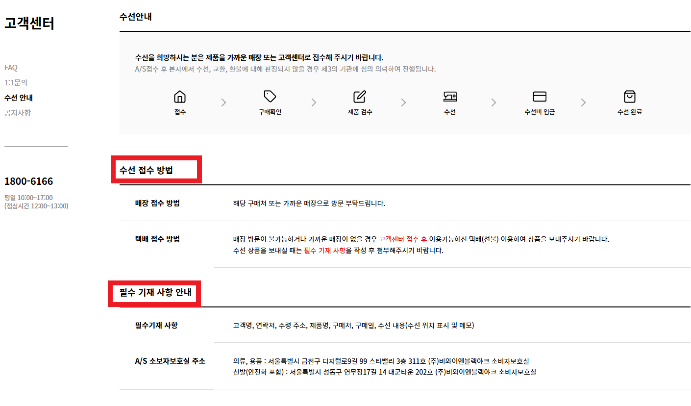 블랙야크 공식 A/S 접수 방법 (매장/택배)