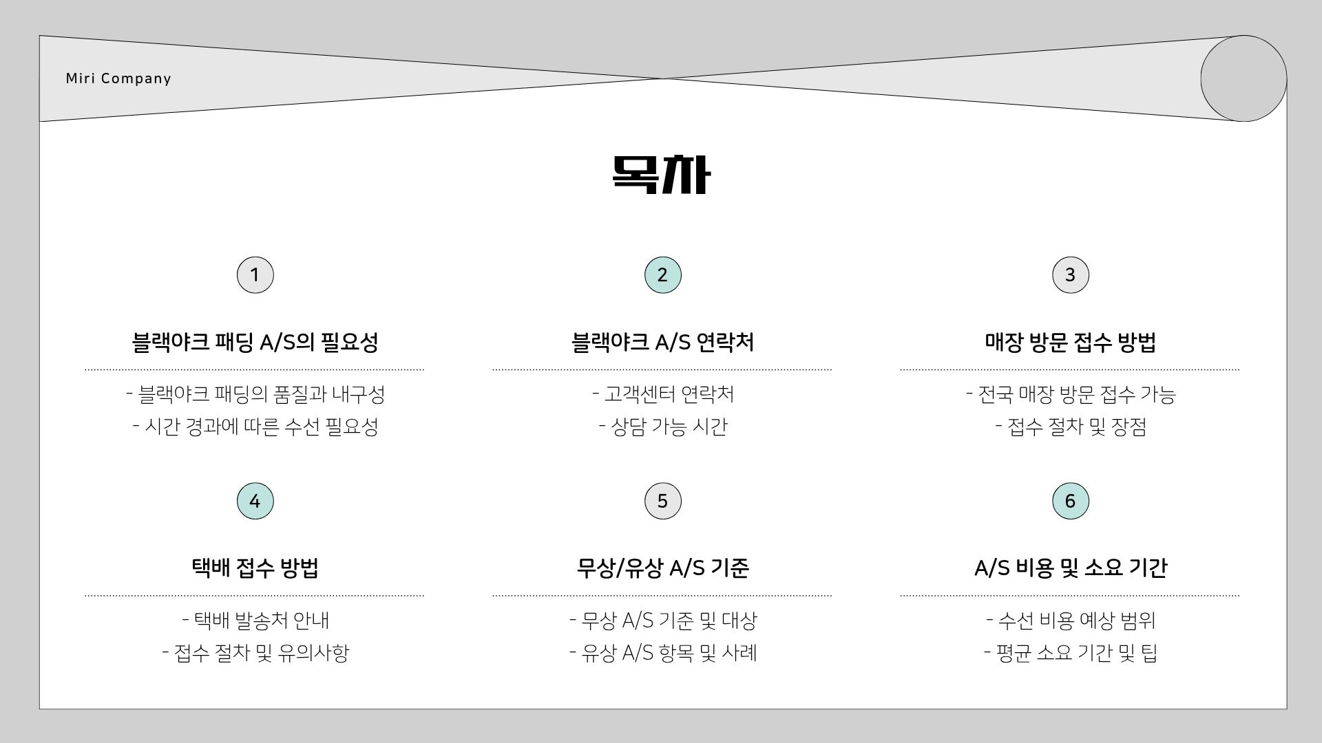 블랙야크 A/S 접수 및 진행 과정 요약 표