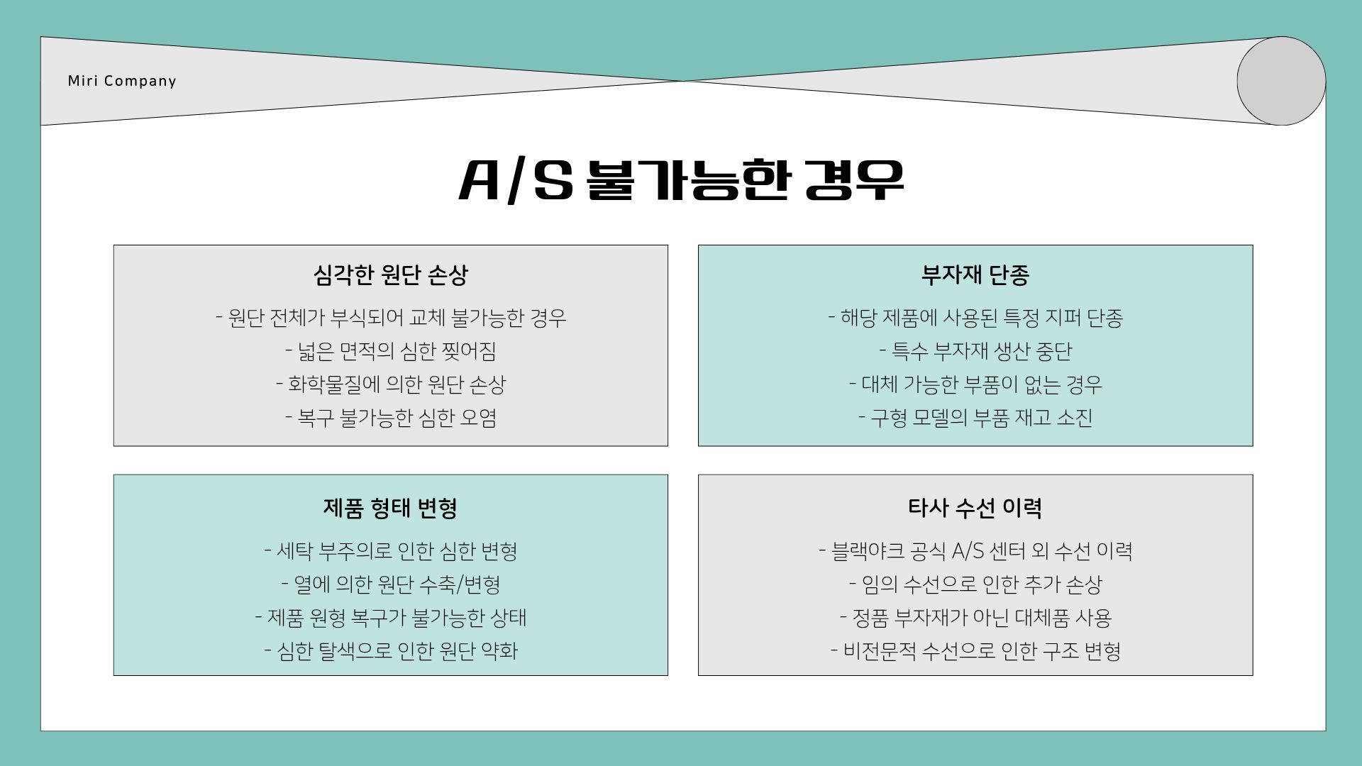 A/S가 불가능한 경우 및 외부 수선 활용