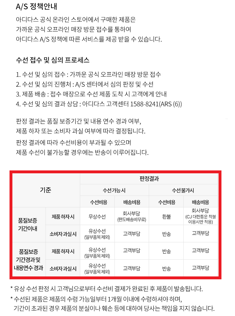 2. 아디다스 A/S (애프터 서비스) 정책 개요