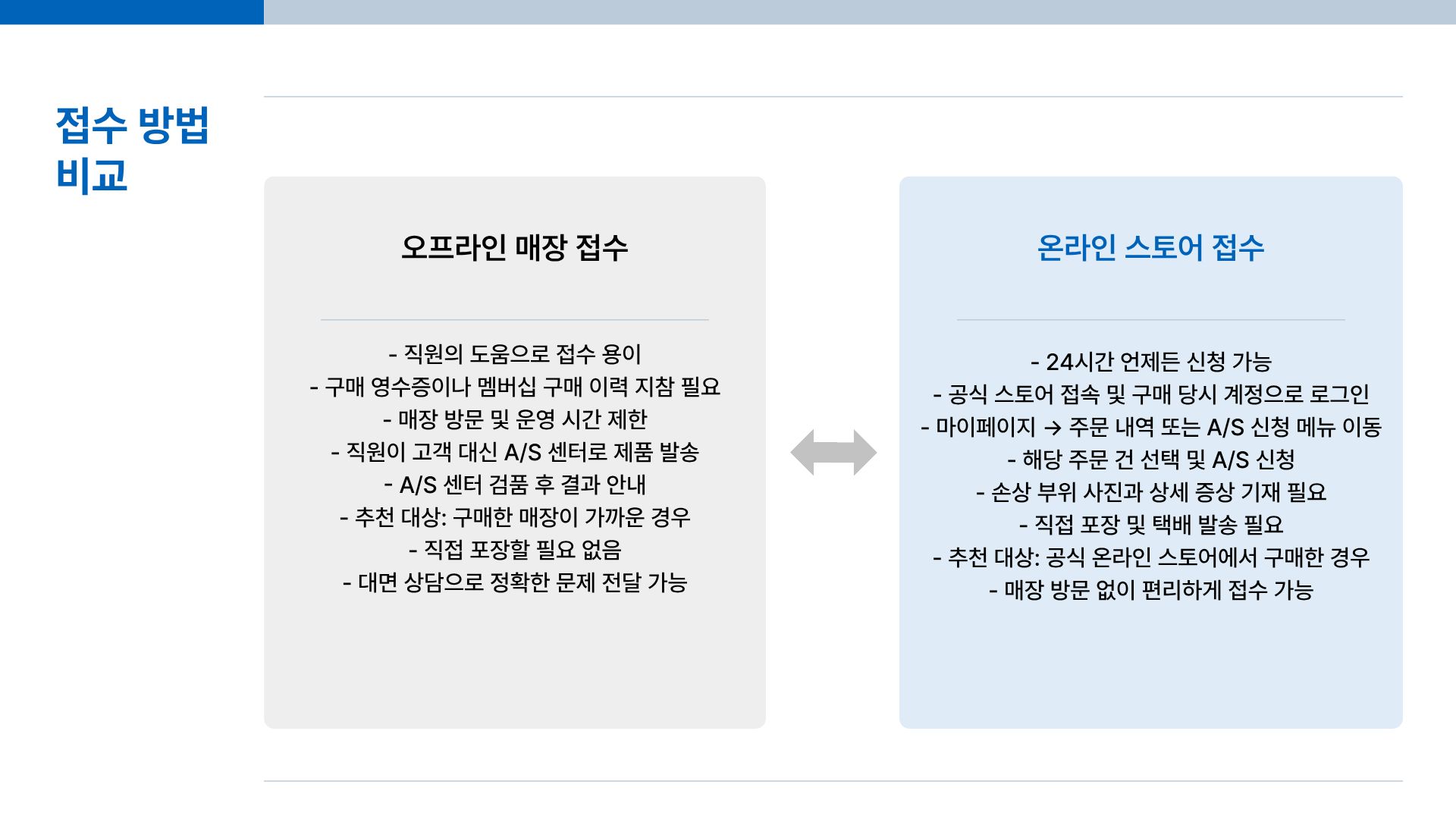 | 구분 | 오프라인 매장 접수 | 온라인 스토어 접수 |