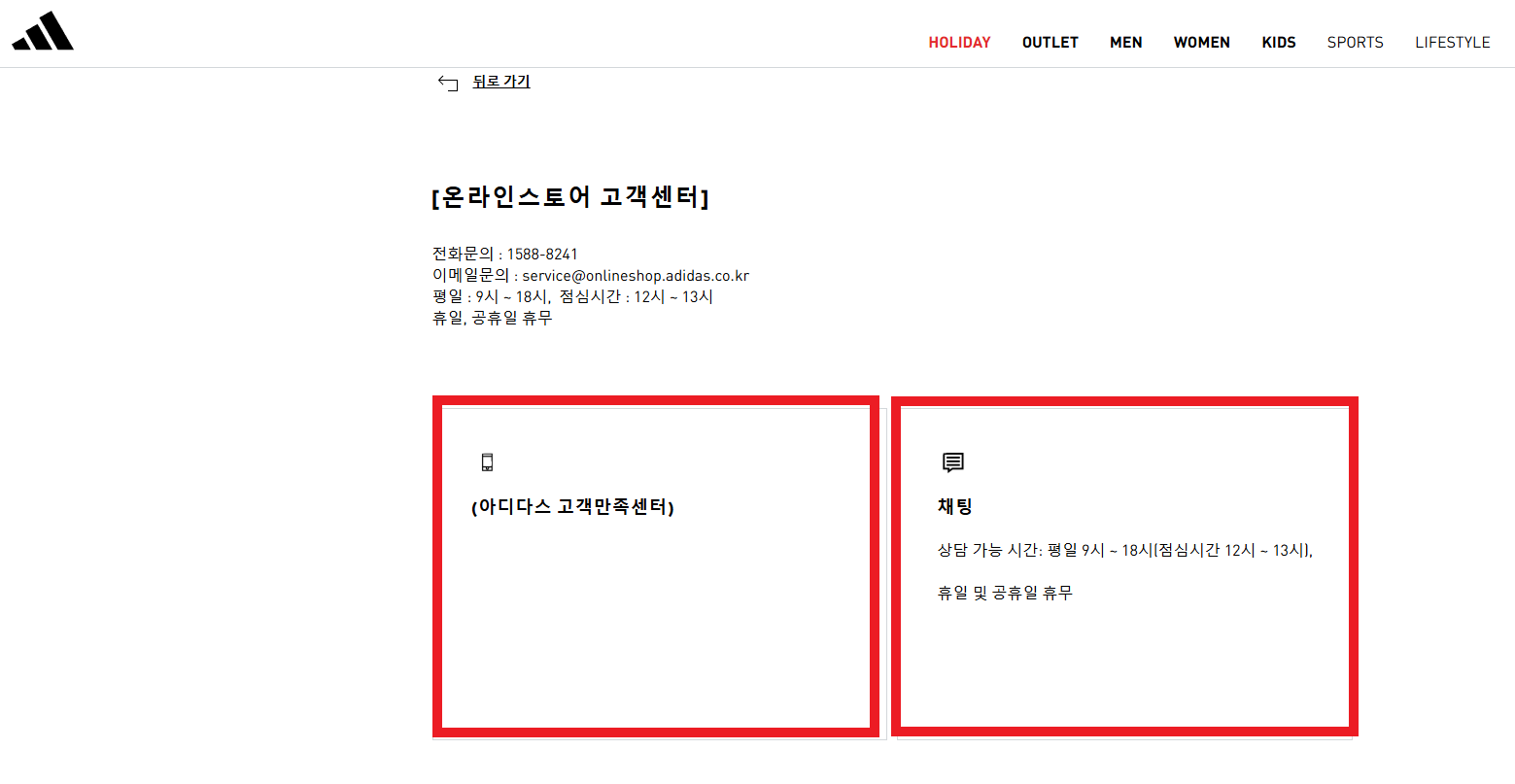 Tip! 아디다스 온라인 스토어 관련 문의는 평일 오전 시간대(9시~10시)에 전화 연결이 비교적 원활합니다.
