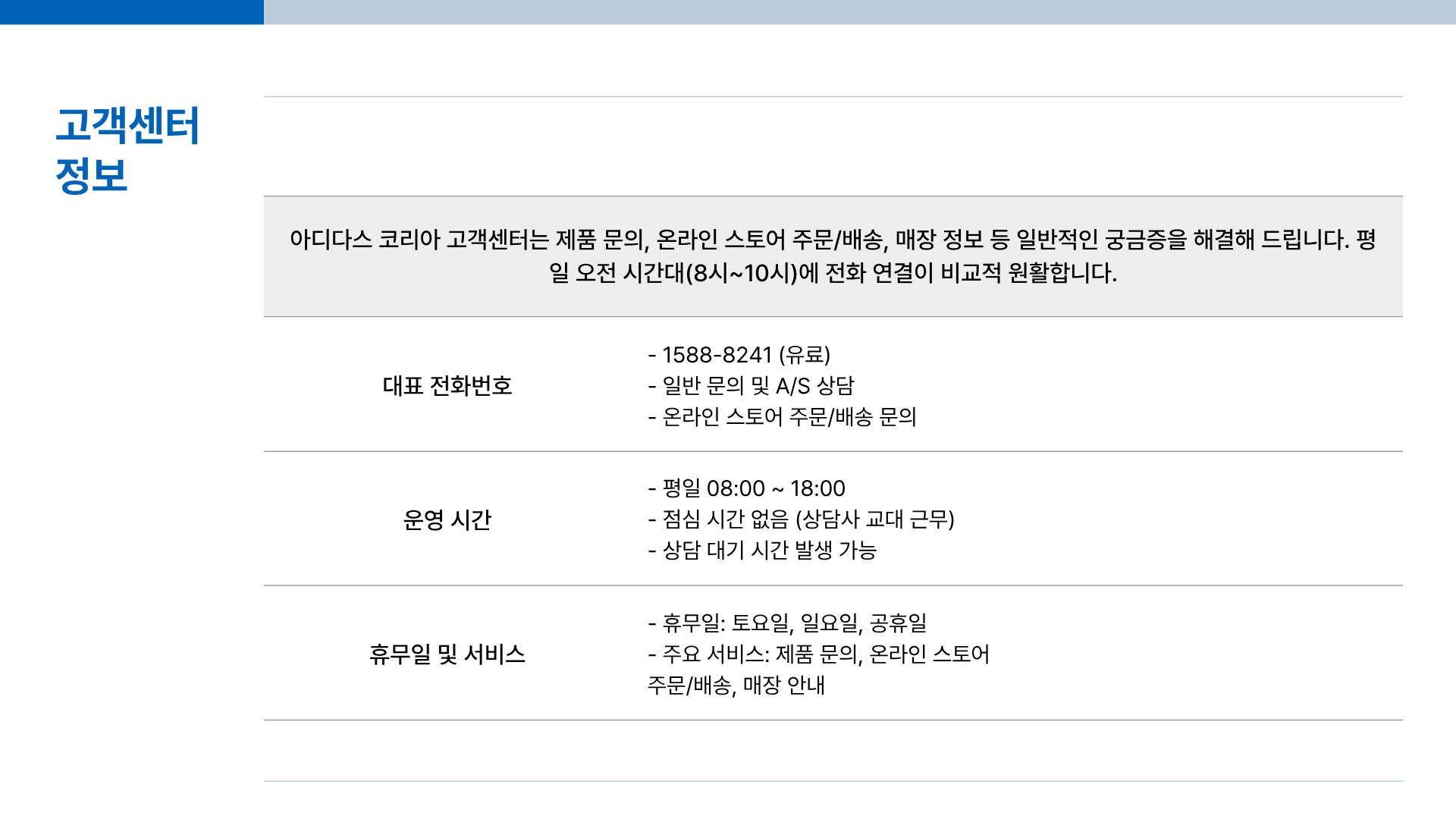 1. 아디다스 코리아 고객센터 전화번호 및 운영 시간