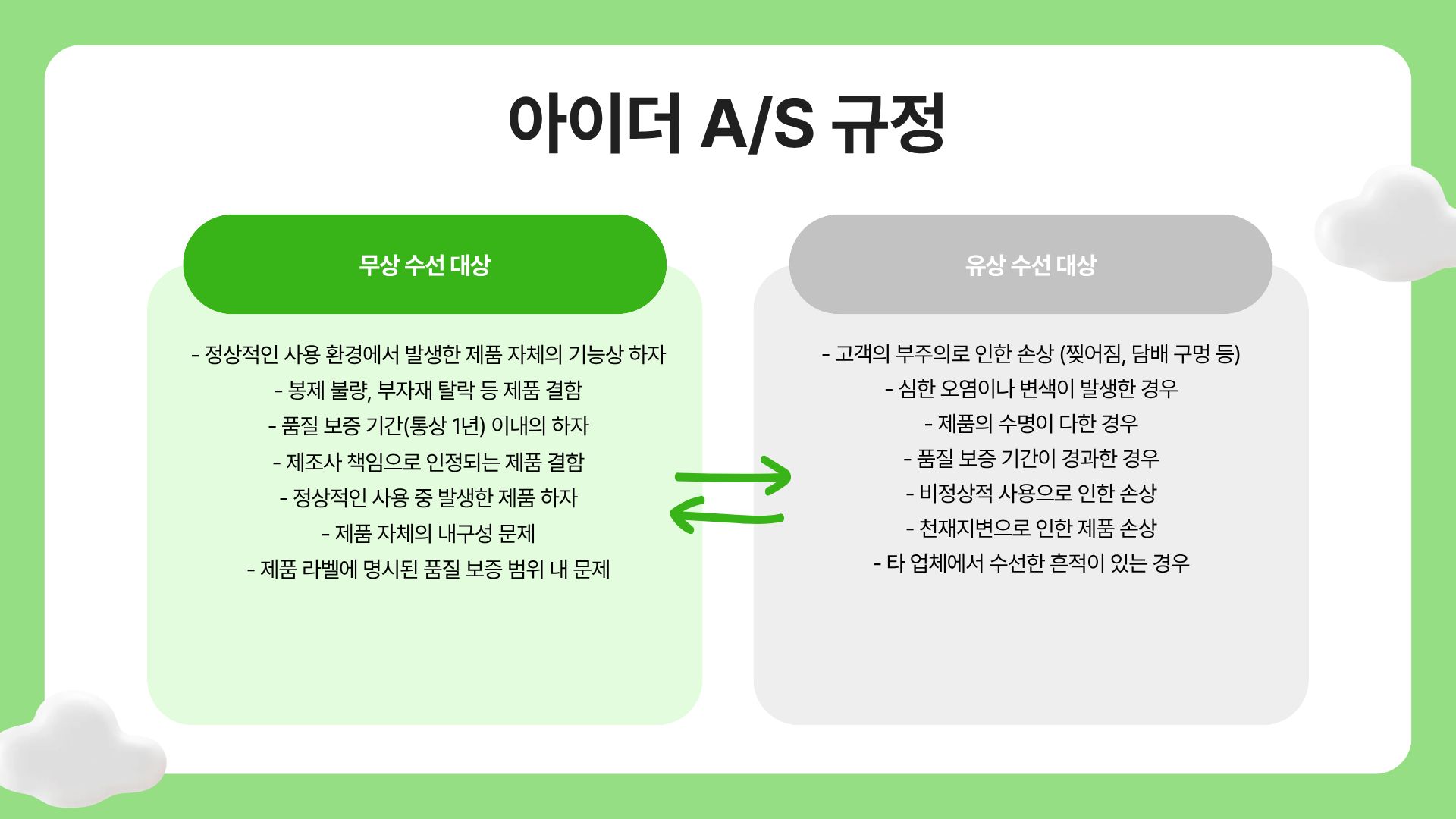 - 무상 수선 대상