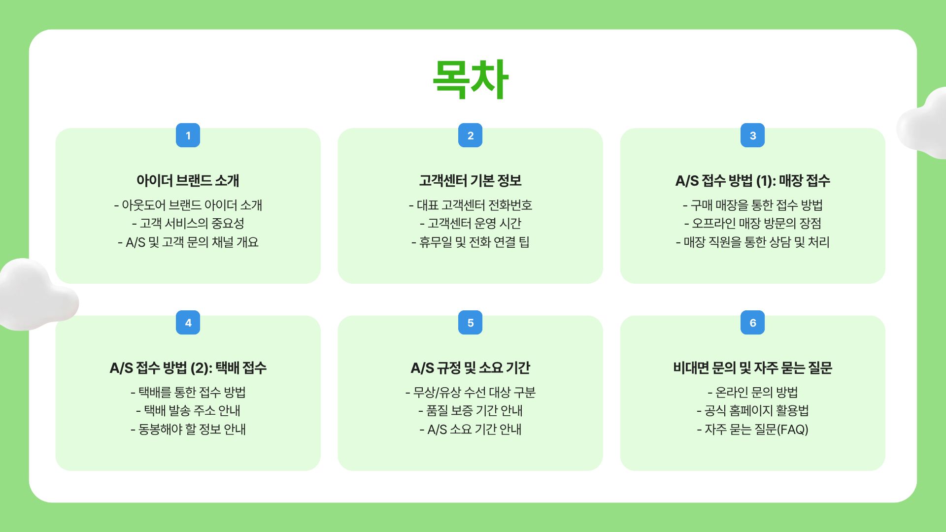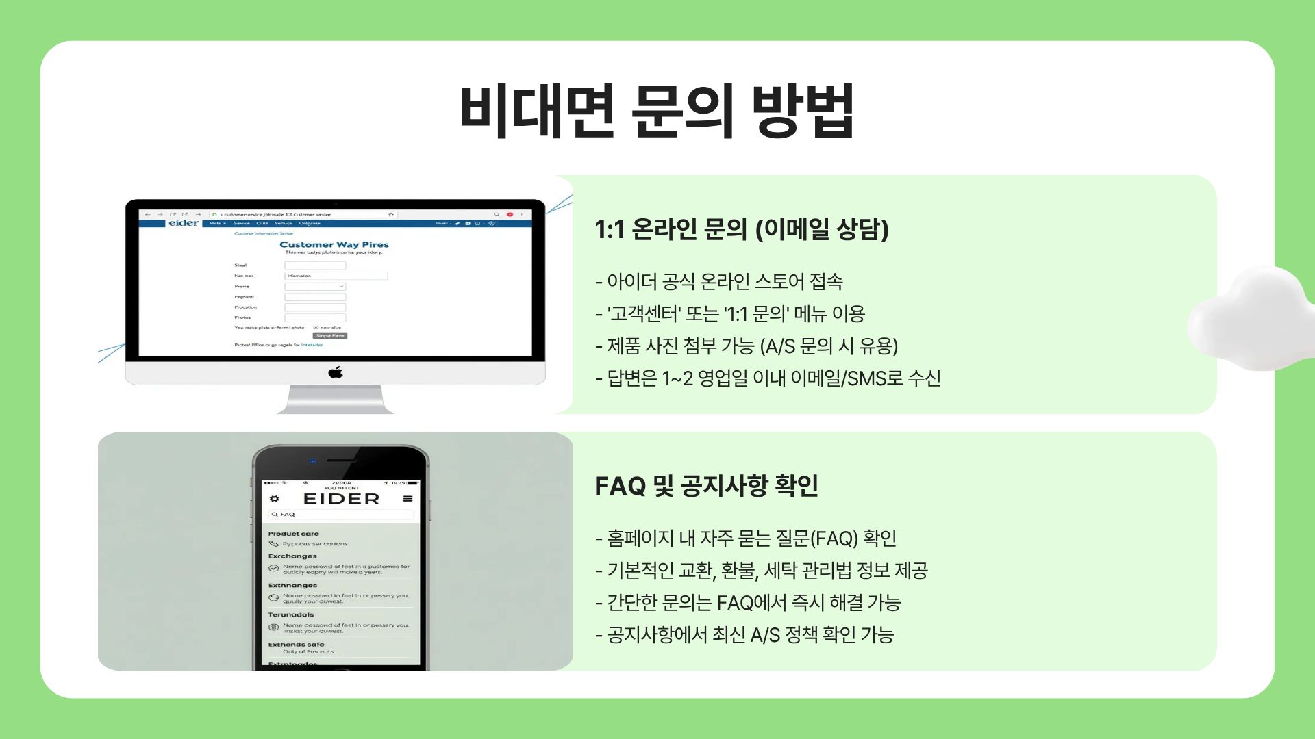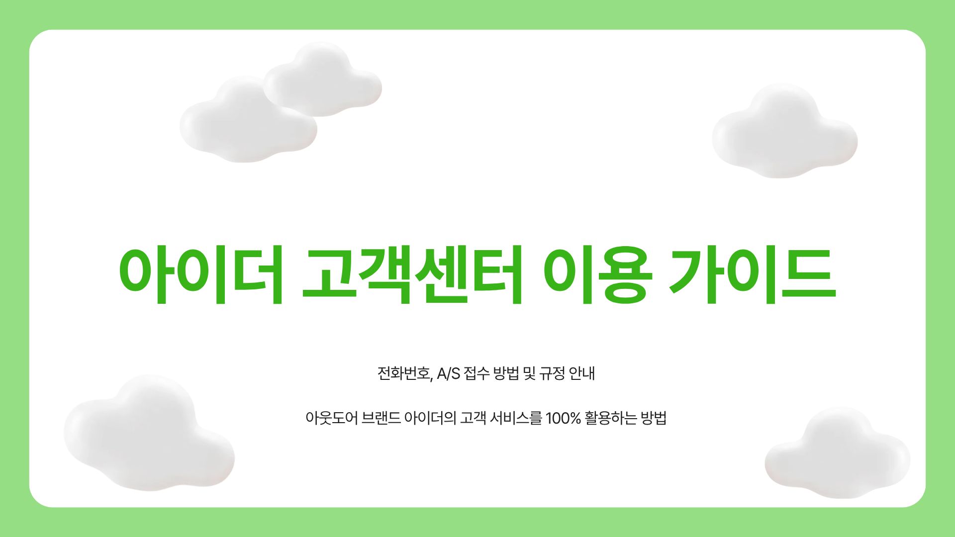 - 아이더 고객센터 주요 서비스 요약 표.
