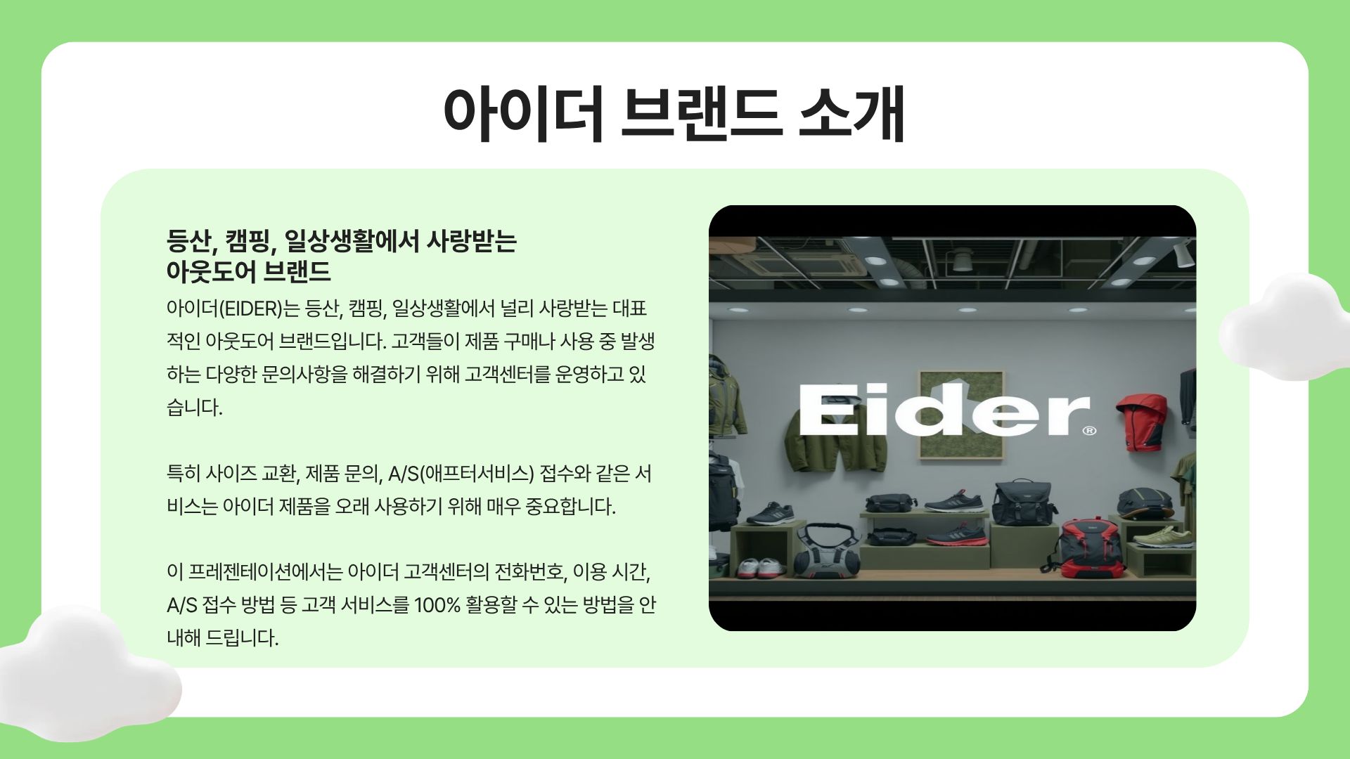 아이더 고객센터 기본 정보 (전화번호 & 운영 시간)