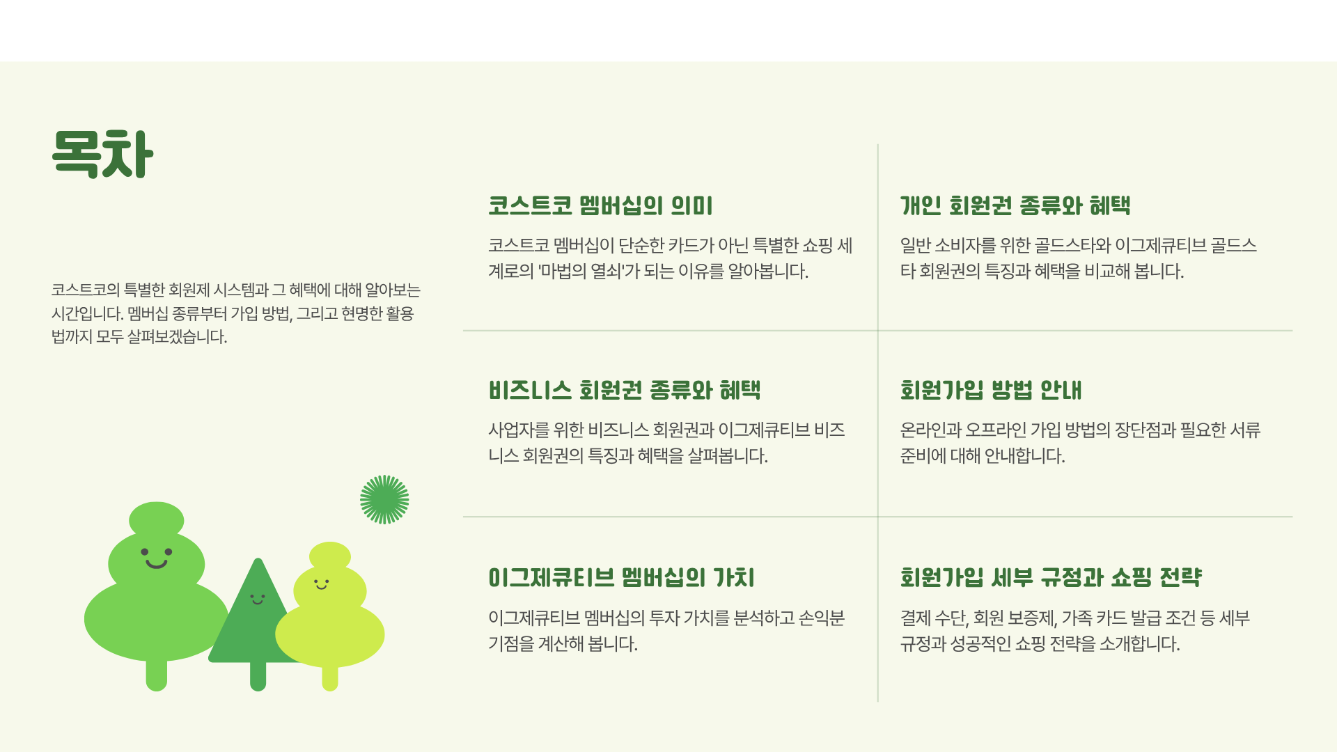- 추천 대상: 코스트코를 가끔 방문하거나, 연간 쇼핑 지출액이 비교적 높지 않은 분들에게는 가장 합리적인 선택입니다.