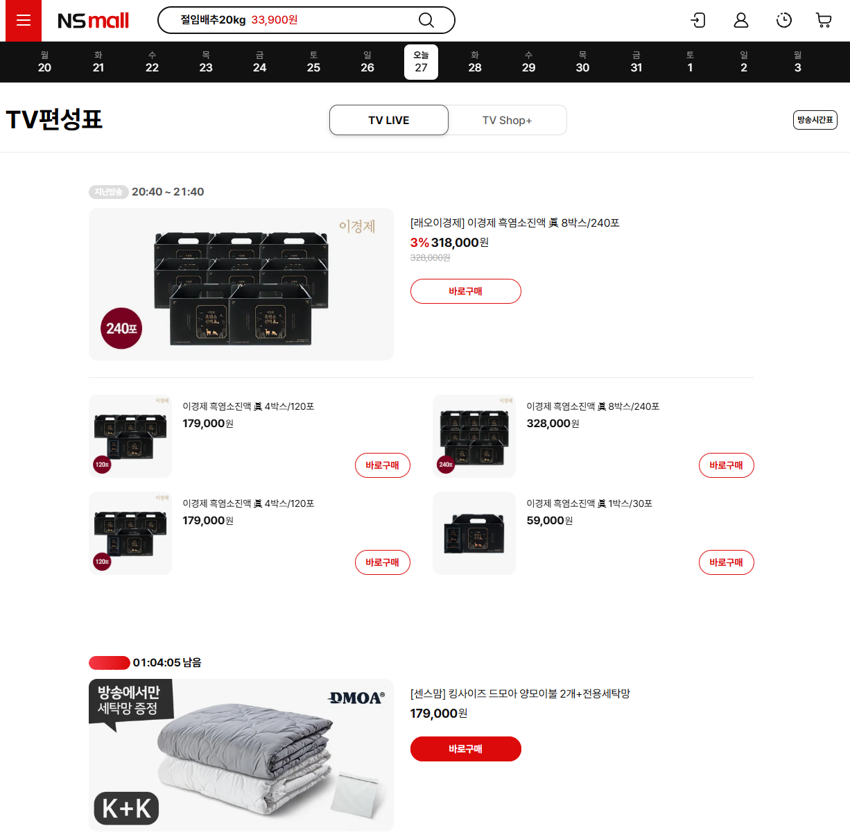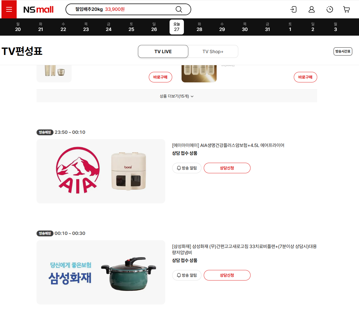 질문1. NS홈쇼핑 편성표는 며칠 치까지 미리 볼 수 있나요?